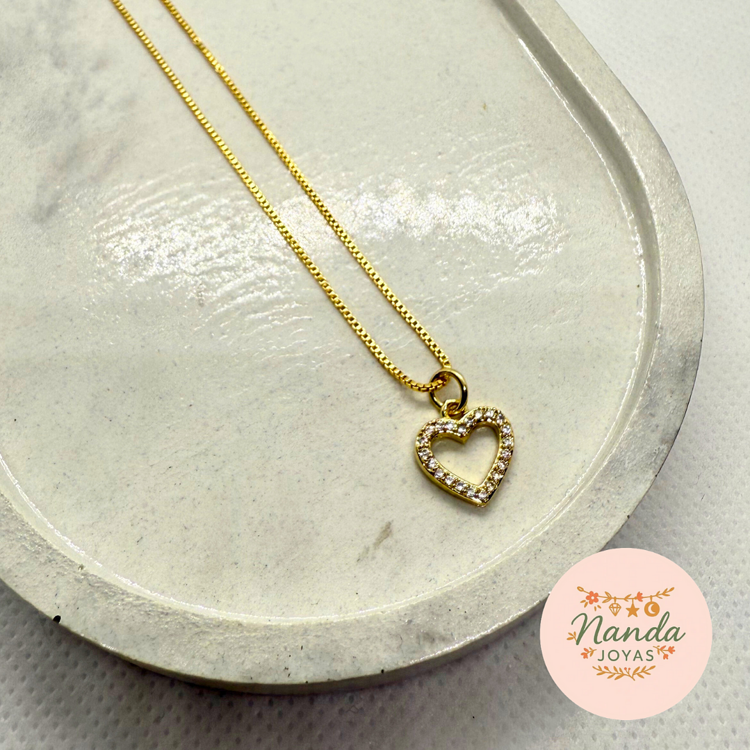 La Cadena con Corazón de Circon Enchapada en Oro es el detalle ideal para acompañar tus momentos más especiales con un toque de amor y luz. Una joya que habla por sí sola.